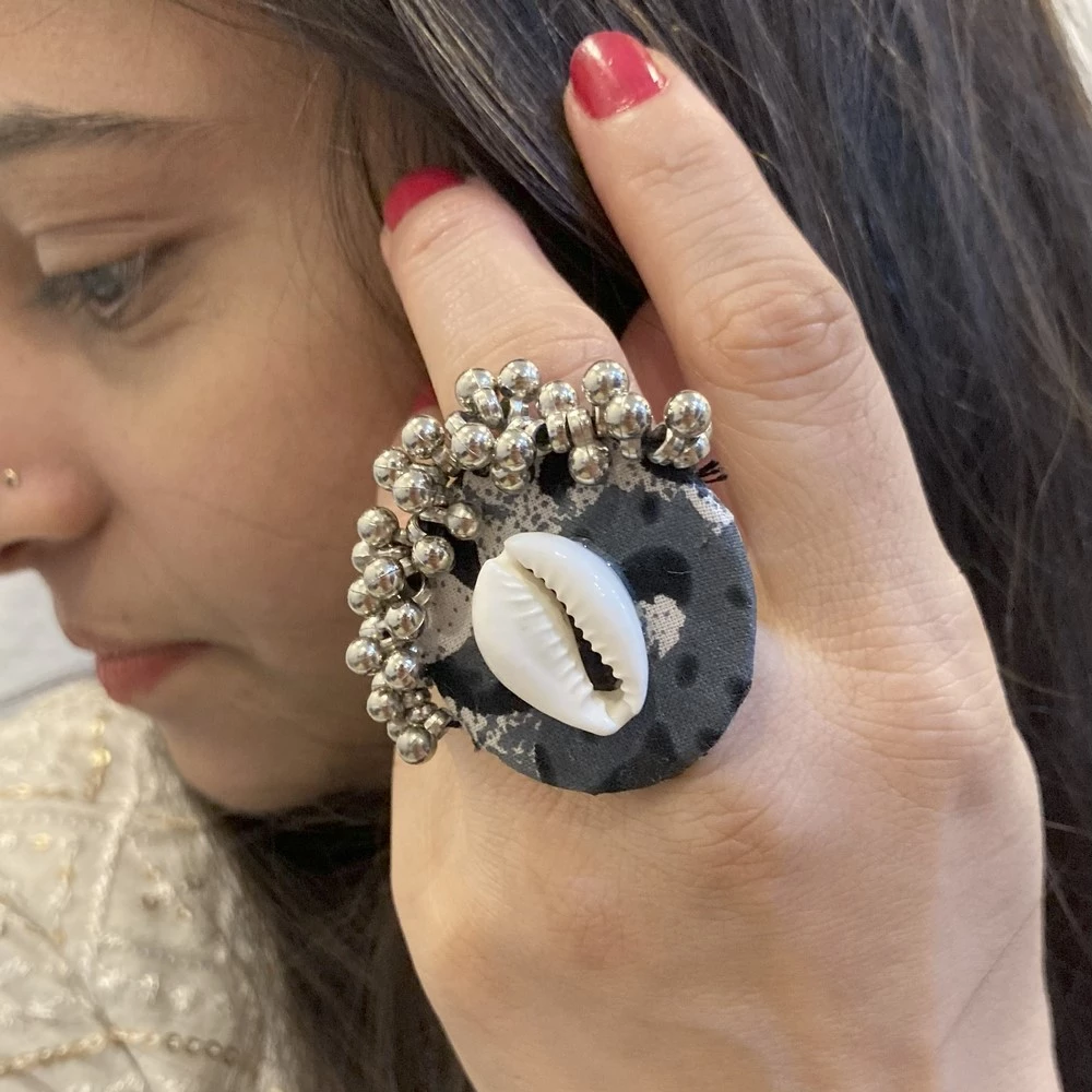 Style: Black-grey round handcrafted ring.