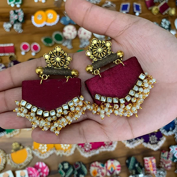 Style: Maroon Half Moon With Diamond handcrafted earrings.